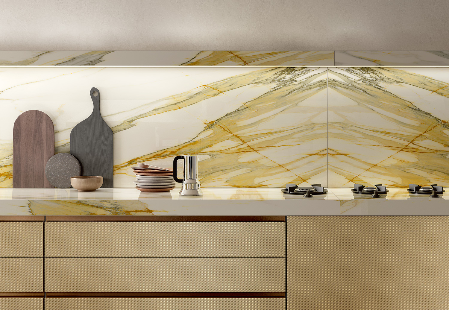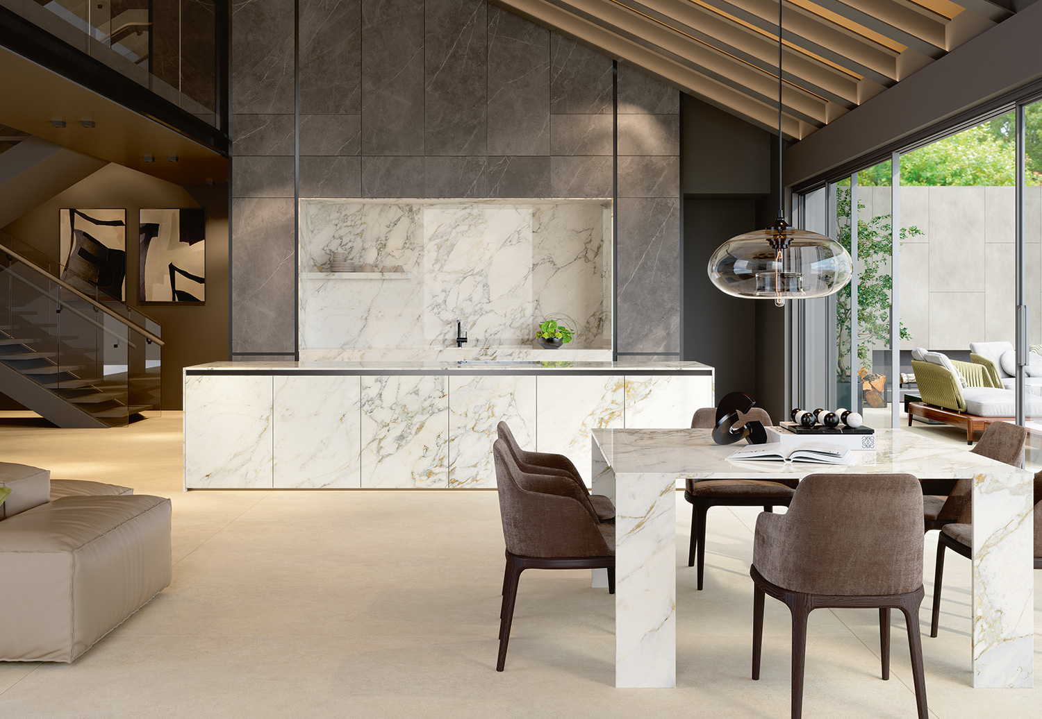 Laminam’s showcases one of the broadest ranges of large-format porcelain slabs on the market. Collections span marble, stone, concrete, wood, metal, and solid colors, offered in multiple finishes such as Naturale, Soft Touch, Lucidato, Bocciardato, and Starlit. Available in sizes up to 1620×3240 mm with thicknesses from ultra-thin 2 mm surfaces to structural worktop slabs, Laminam’s versatility makes it ideal for countertops, flooring, façades, cladding, and furniture design. Produced in Italy with sustainable technologies, the range combines cutting-edge technical performance with timeless Italian aesthetics.