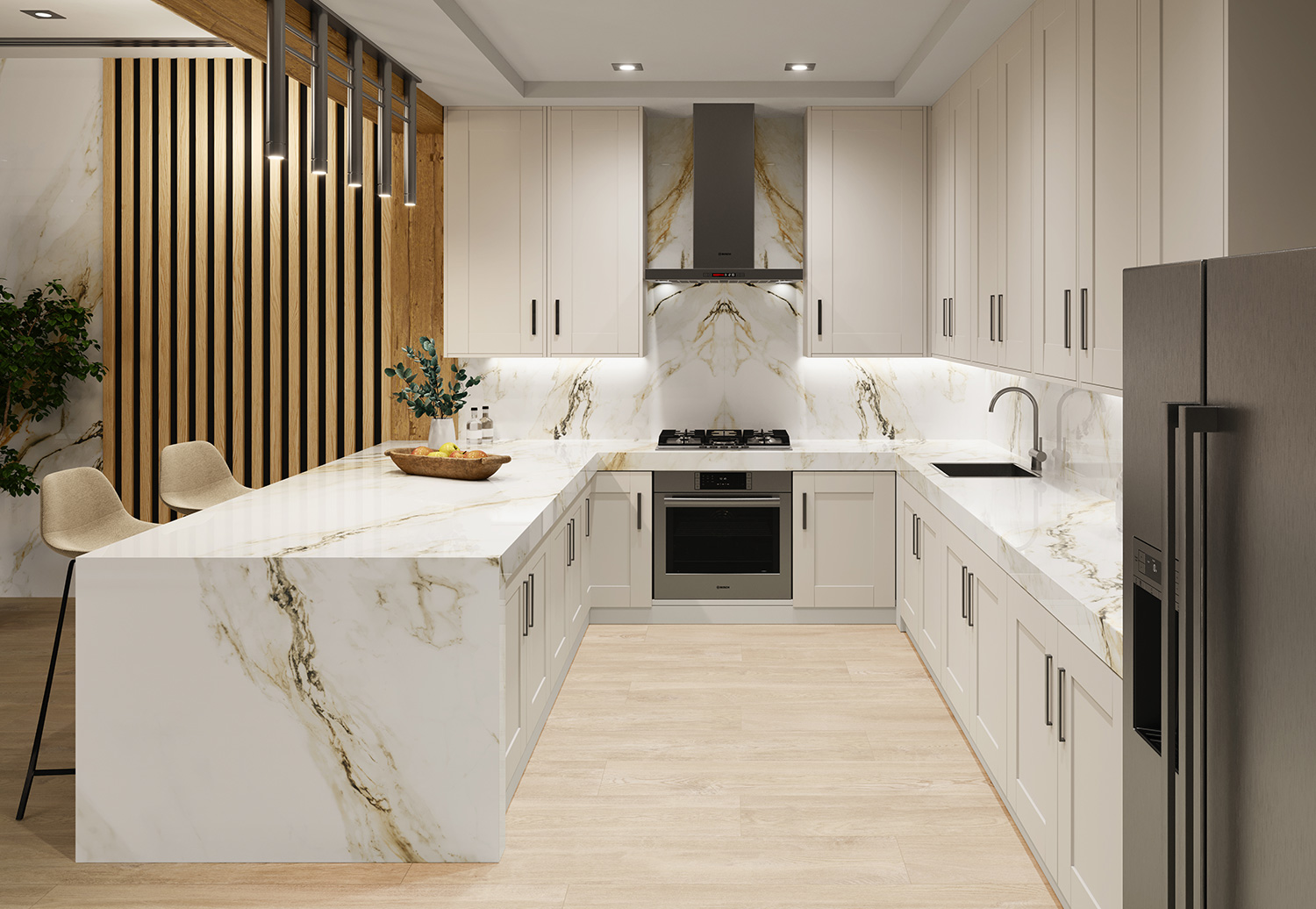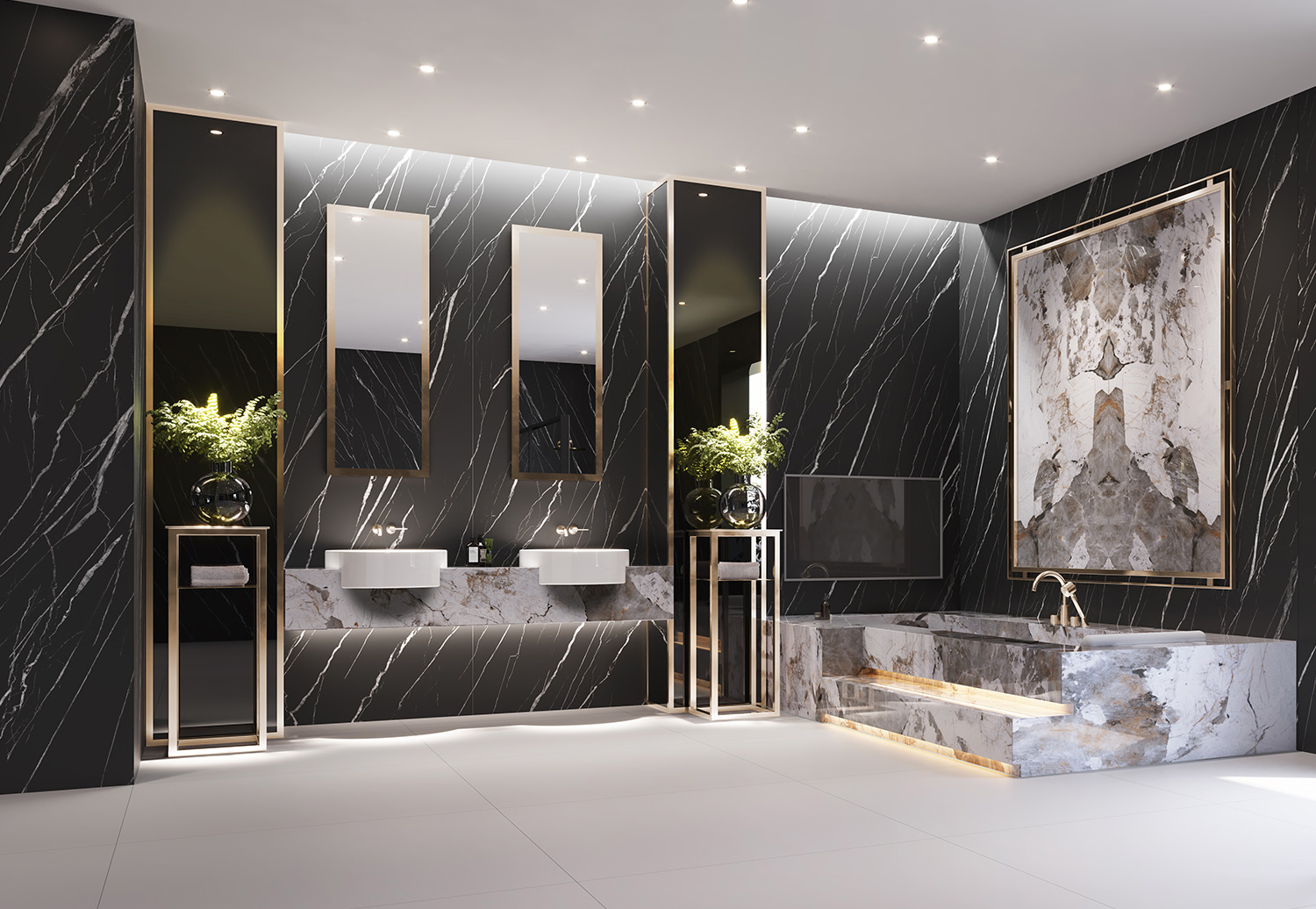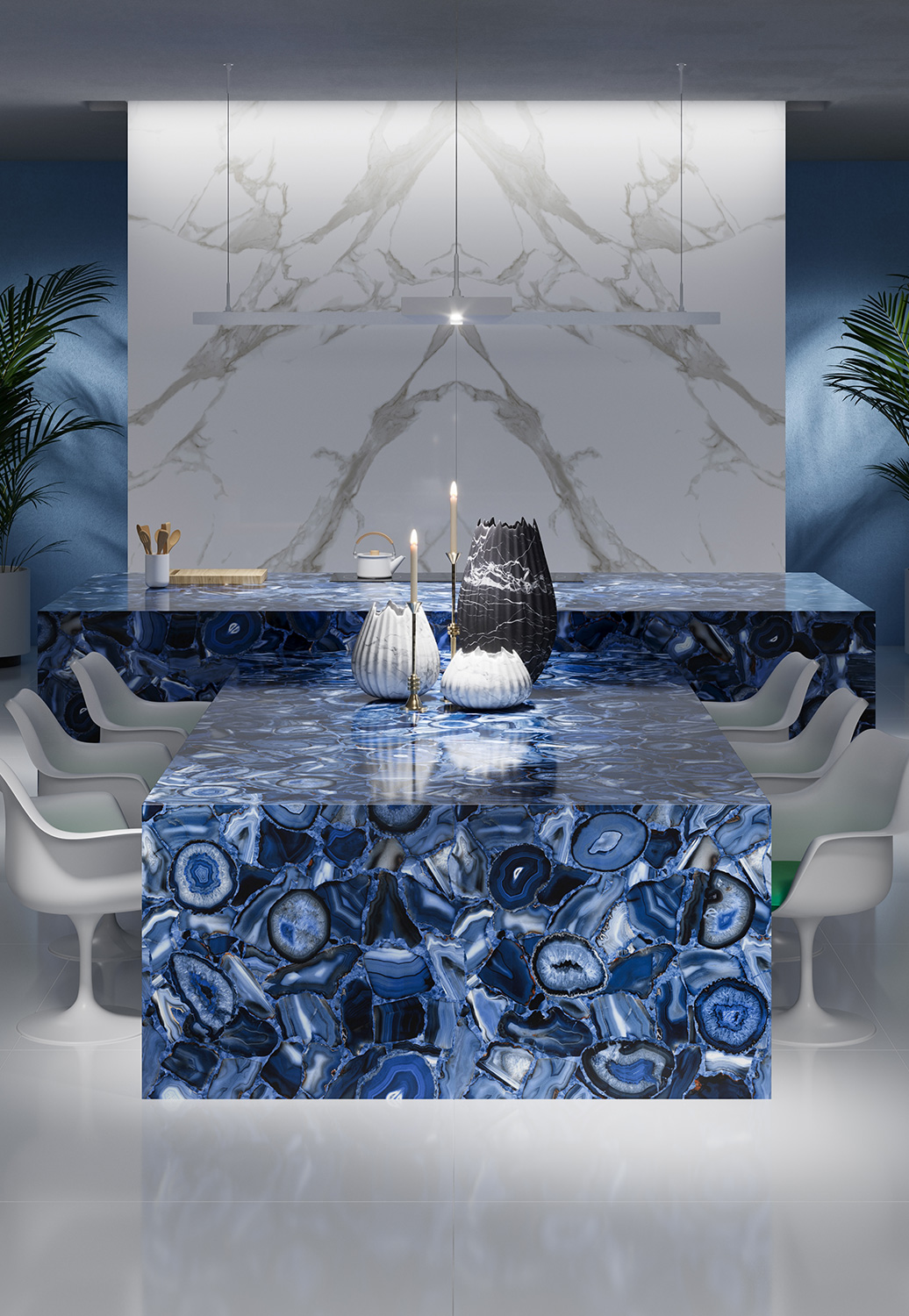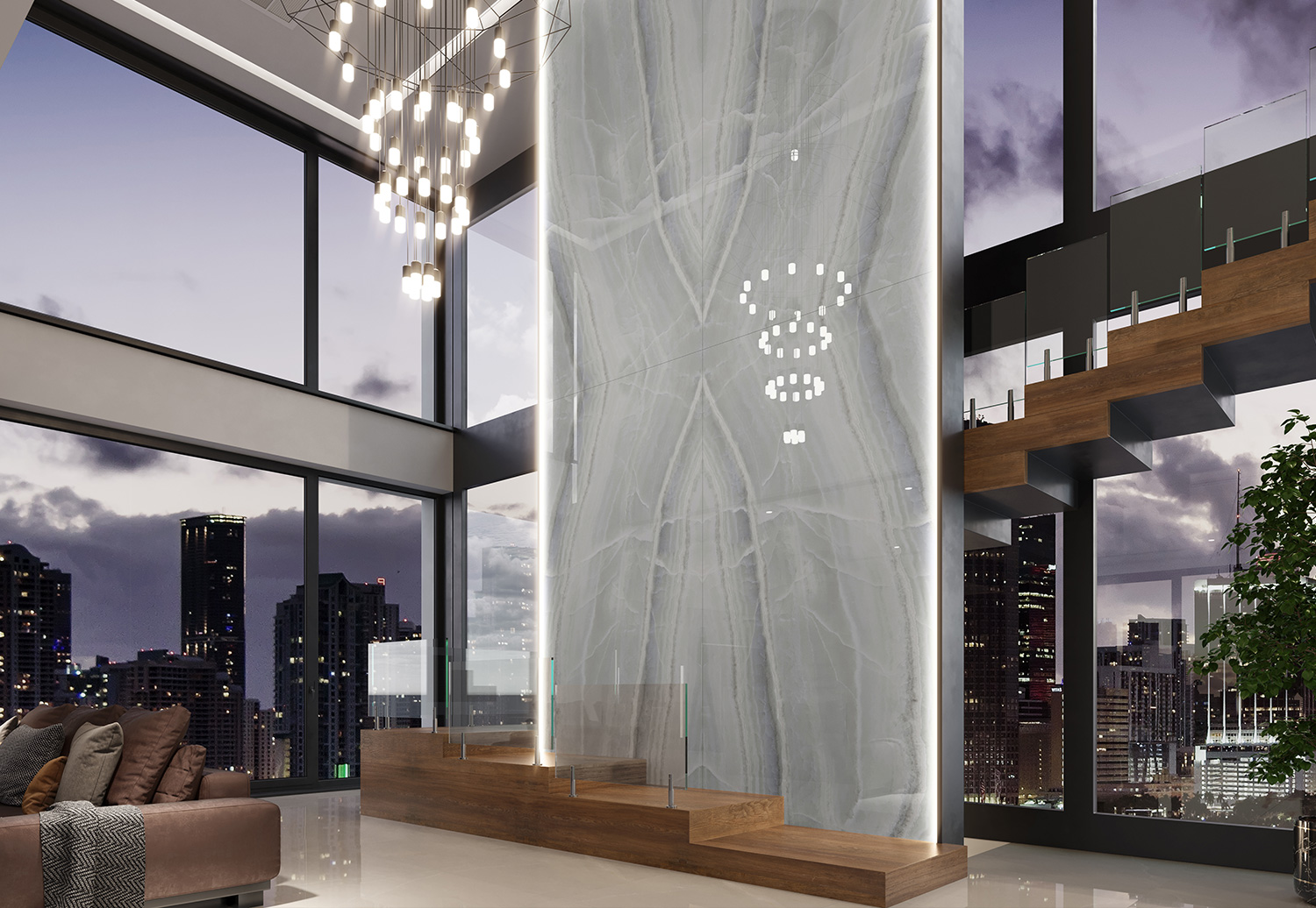 Kitchen & bathroom countertops, full‑height backsplashes, shower surrounds, fireplace surrounds, large tables, vanities, floors & walls, pivot doors, stairs, benches, and more.