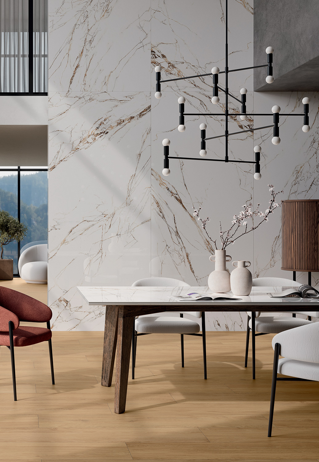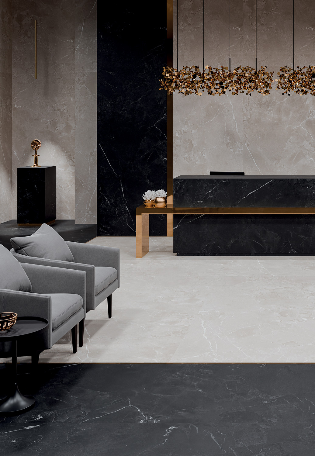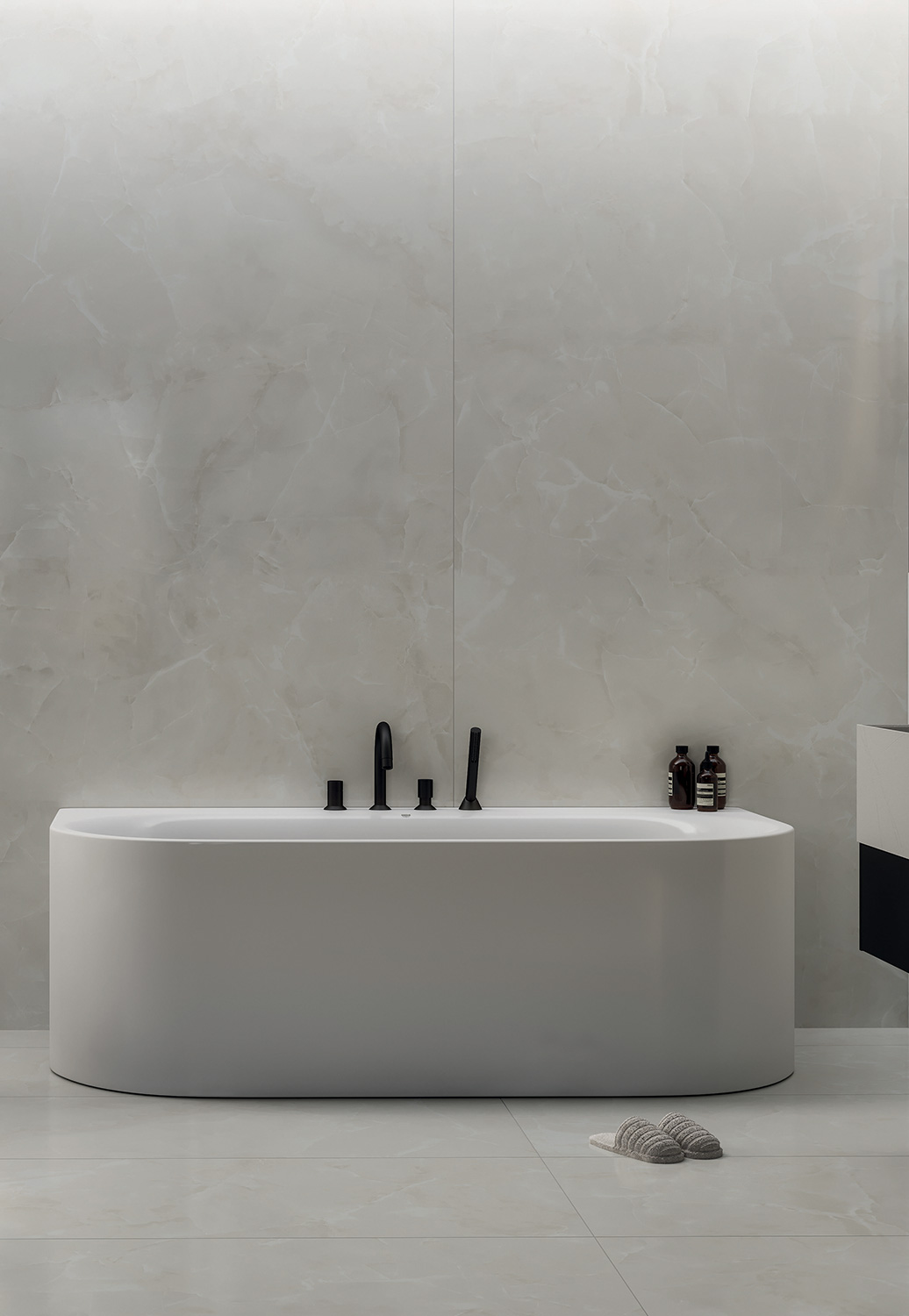 Experience the epitome of modern elegance with our collection of large, thin porcelain tile slabs. Each slab is a masterpiece of design, blending stunning aesthetics with cutting-edge technology. Their expansive size and sleek profile create a seamless, sophisticated look, perfect for transforming any space. Ideal for luxurious floors, dramatic walls, and statement countertops, these slabs are not only visually striking but also remarkably durable. Elevate your environment with this exquisite fusion of art and functionality.