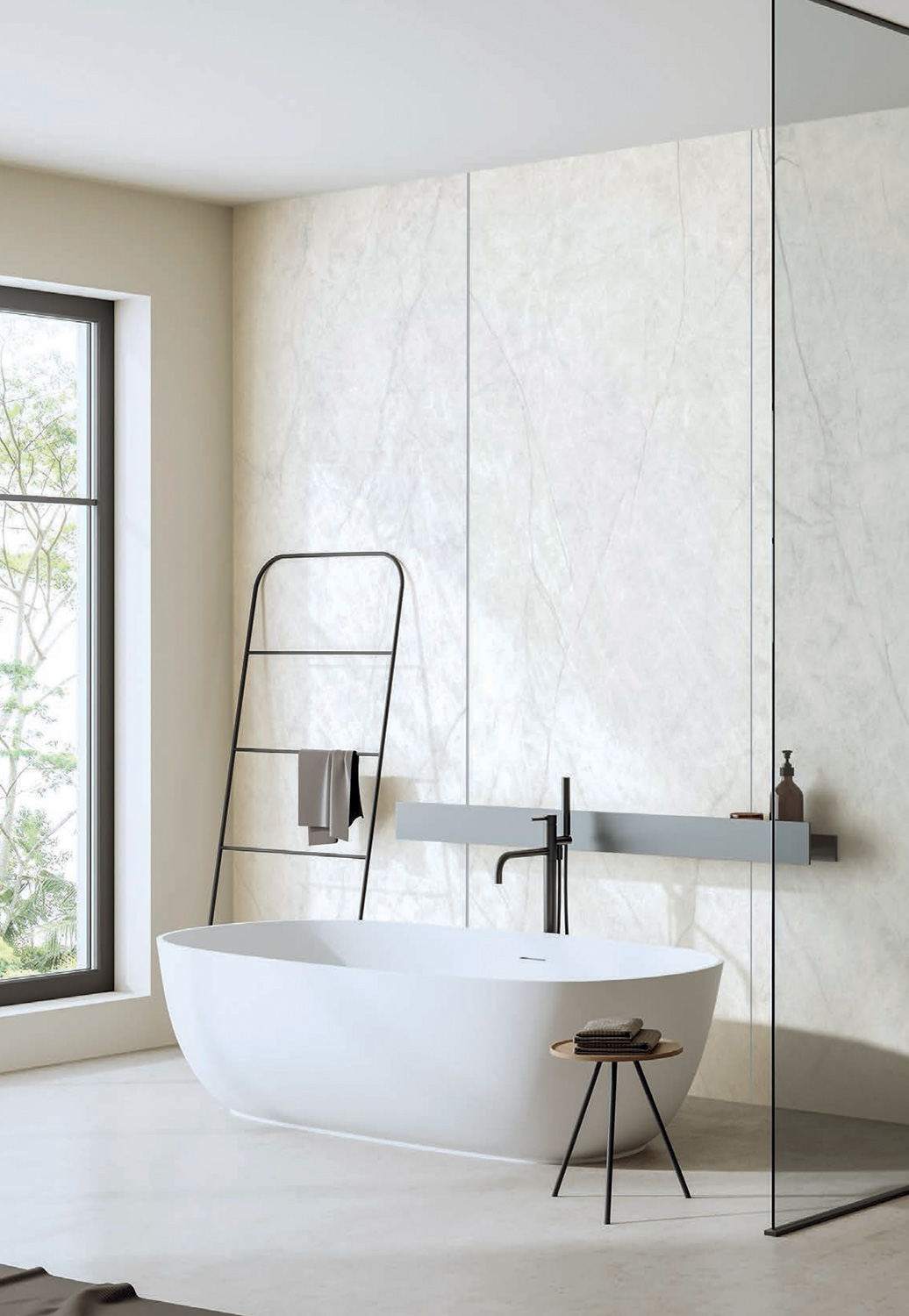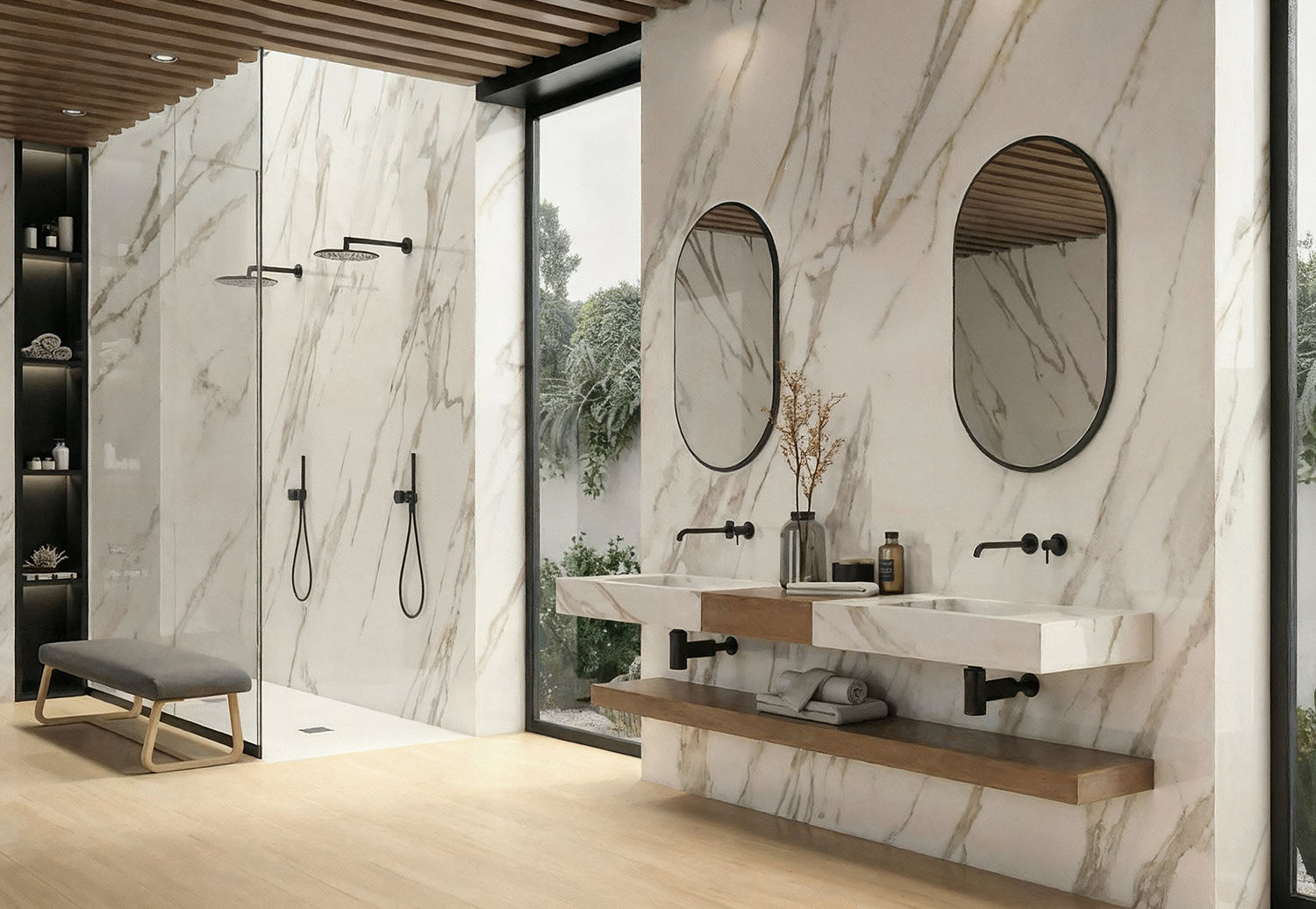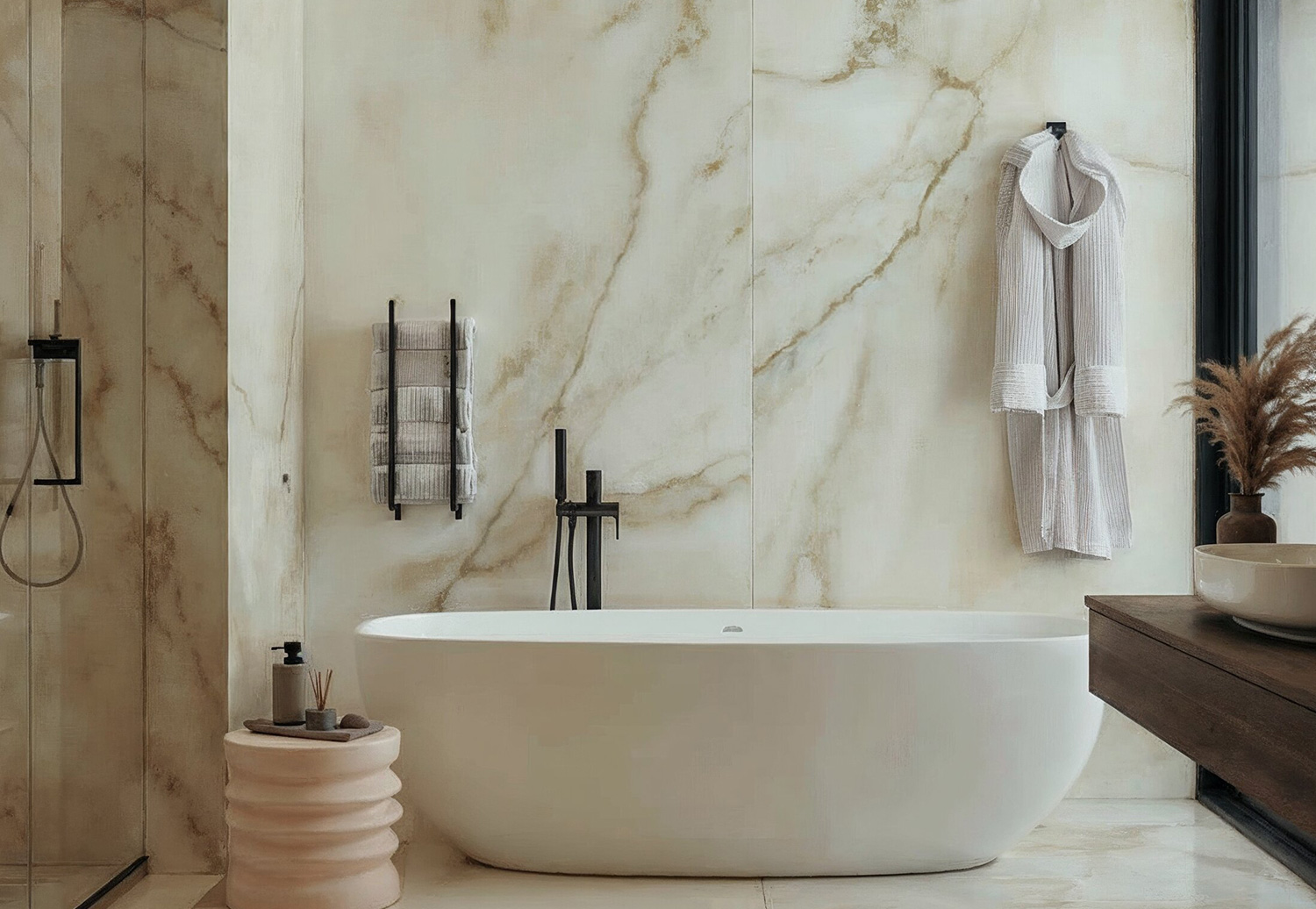 Experience the epitome of modern elegance with our collection of large, thin porcelain tile slabs. Each slab is a masterpiece of design, blending stunning aesthetics with cutting-edge technology. Their expansive size and sleek profile create a seamless, sophisticated look, perfect for transforming any space. Ideal for luxurious floors, dramatic walls, and statement countertops, these slabs are not only visually striking but also remarkably durable. Elevate your environment with this exquisite fusion of art and functionality.